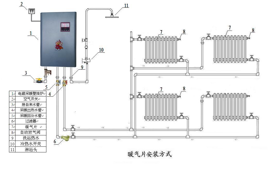 最新电磁采暖洗浴壁挂炉安装方式